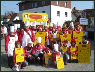 Sichtlich überrascht, waren unsere Faschingsschützen mit dem erreichen des ersten Platzes beim diesjährigen Olchinger Faschingszuges am 8.3.11. „Die Arbeit hat sich dann doch gelohnt!“ waren die Worte unserer Jugendleiterin, Alexandra Kriegner, die maßgebend für die Verwirklichung verantwortlich war. Unzählige Stunden verbrachte Sie gemeinsam mit einem Teil Ihrer Jugend (Alexander, Christian, Annika, Maxi, Florian und Jasmin), bei der Gestaltung der Maggi`s – Gemeinderatsfix – Kochbeutel. Aber auch die beiden Leiterwagen wurden auf Vordermann gebracht und eine fast funktionierende Küche eingebaut. Hier war es Christian Kriegner, der gemeinsam mit Seppi Bäckerbauer die vielen Ideen in die Tat umsetzten.