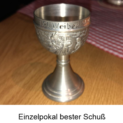 Weitere Pokalgewinner sind: Andrea Kneidl, Lukas Schmidt, Markus Altenberger, sowie die Tagesbesten: Jasmin Kriegner, die gleich 3 Wanderpokale errang und Christian Gerber, der 2 Wanderpokale gewonnen hat und dabei das beste Blatt`l des Abends (14,3 Teiler) geschossen hat.