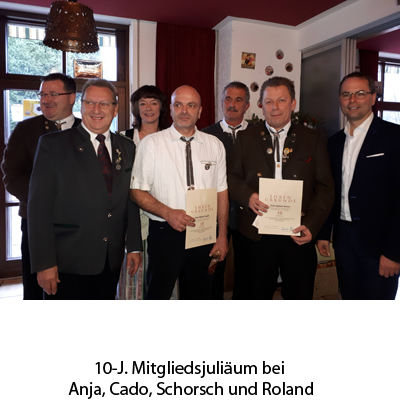 Der Schützenverein Geiselbullach freut sich, dass viele Mitglieder treu und langjährig verbunden sind. 1. Schützenmeister Christian Kriegner konnte deshalb im Beisein von 3. Gauschützenmeister Jürgen Lieberam (links) und Olchings 1. Bürgermeister Andreas Magg (rechts) mehrere Mitgliedern mit verschiedenen Ehrungen auszeichnen: