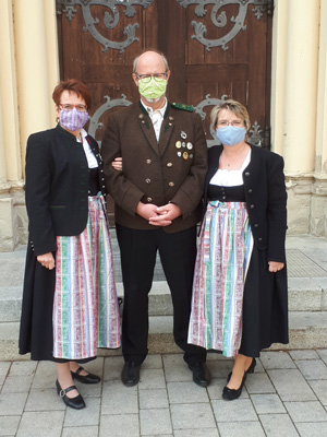 Deshalb war zum Jahramt am 16.5.2020 coronabedingt weder ein Zusammentreffen der Mitglieder, noch eine Fahnenabordnung zulässig. So hat Fahnenträger Werner Minde bei der Hl. Messe den Schützenverein mit seiner Frau & 2. Schützenmeisterin Elke Minde sowie seiner Schwägerin Doris Franke im Familienverbund vertreten. Ein ungewohntes Bild – ohne Mitglieder, ohne Fahne, dafür mit Mund-Nasen-Schutz. Es gilt eben, aus jeder Situation das Beste zu machen! Der Schützenverein wünscht allen Mitgliedern und Freunden nur das Beste und – besonders in der Zeit der Pandemie - eine gute Gesundheit!